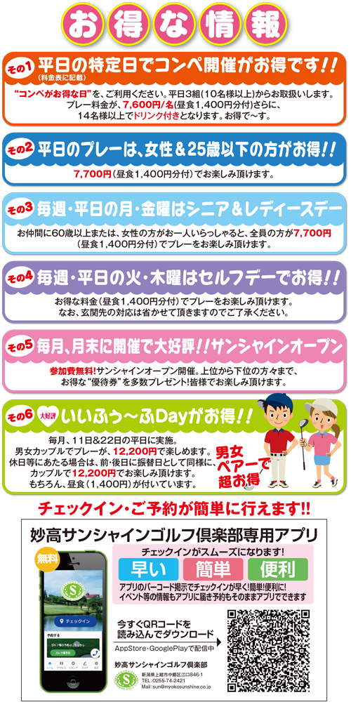 降雪の影響により12月xx日にて、 妙高サンシャインゴルフ倶楽部は、今シーズンの営業を終了いたしました。 多くのお客様のご来場、誠にありがとうございました。 2026年は、4月初旬のオープンを予定しております。 来シーズンも妙高サンシャインゴルフ倶楽部をよろしくお願い申し上げます。